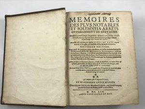 FAIL (Noël du) — Mémoires des plus notables et solennels arrêts du Parlement de Bretagne. — 1 fort vol. in-4 relié plein veau époque, dos à nerfs à caissons armoriés et fleurdelisés. — Rennes Vatar 1654. [L'E.O. est de 1579].