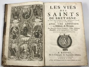 [HAGIOGRAPHIE] LOBINEAU (Dom Guy-Alexis) — Les vies des Saints de Bretagne et des personnes d'une éminente piété... — 1 vol. in-folio allongé relié plein veau marbré époque, dos à nerfs à caissons ornés. — Rennes Compagnie des...