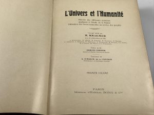 KRÆMER (H.) — L'univers et l'humanité. — Histoire des différents systèmes appliqués à l'étude de la nature. — Utilisation des forces naturelles au service des peuples. — 5 forts vol. in-4 reliés ½ basane caramel à motifs floraux...
