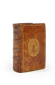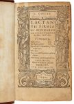 [LACTANCE]. Lactantii Firmiani Divinarvm Institvtionvm Libri septem. Antverpiae [Anvers], Apud viduam & hæredes Ioannis Stelfii, 1570. In-16, veau, filet doré encadrant les plats, large motif ovale au centre, dos à nerfs orné (reliure de...