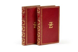 » couronné au centre, dos à nerfs orné, tranches dorées (Simier R. du Roi). Édition collective peu courante des OEuvres de Racine. Deux titres-frontispices généraux et douze titres-frontispices de relais gravés. De la bibliothèque Zénobe Frotier de Bagneux (1828-1915), avec monogramme doré sur les plats.
