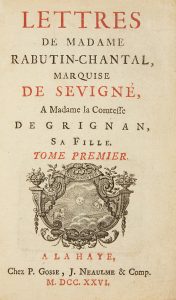 SÉVIGNÉ (Marie de Rabutin-Chantal, marquise de). Lettres [] a Madame la Comtesse de Grignan, sa fille. A La Haye, Chez P. Gosse, J. Neaulme & Comp., 1726. 2 tomes en un volume in-12, maroquin rouge, monogramme couronné doré aux angles des plats,...