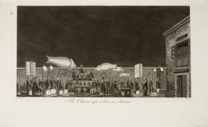 comprenant 98 figures gravées sur cuivre (numérotées de 1 à 97 et 93 bis) sur 66 planches (dont 32 à deux sujets), dont six cartes in fine (dont quatre repliées). Sans les trois volumes in-8° de texte. Coins émoussés.
