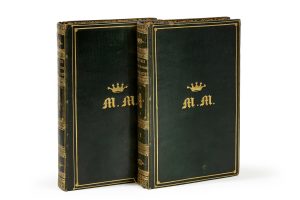 MAISTRE (Xavier de). OEuvres complètes. Paris, Dondey-Dupré Père et Fils, Éditeurs, 1828. 2 volumes in-8°, chagrin vert, double filet doré encadrant les plats, monogramme « m. m » couronné au centre, dos lisse orné, tranches dorées...