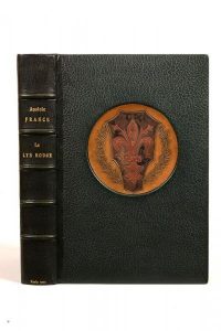 FRANCE (Anatole). — Le Lys rouge. Paris, A. Romagnol, 1903. In-8, maroquin noir, au centre du premier plat fleur de lys mosaïquée en veau de tons brun, bordeaux et fauve, tête dorée, cadre intérieur orné de filets et pointillés dorés,...