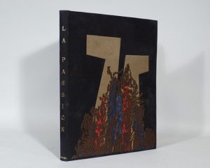 GERSON (Jehan). — La Passion de Notre Seigneur. — [Paris], Pierre de Tartas, 1960. — In-folio, maroquin poli noir, composition de maroquin brun, rouge, bleu mosaïqué couvert d'une matière synthétique brune, doublure et gardes de daim taupe,...