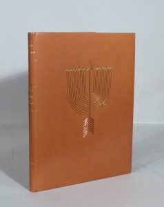 doublure et gardes de daim pourpre, couverture et dos, chemise et étui (R. Desmules).