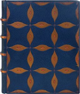 gardes de soie à motifs géométriques, doubles gardes, tranches dorées, couvertures (Buer Lyon).