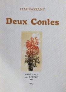 MAUPASSANT (Guy de). — Deux contes. — Paris, Société normande du livre illustré, 1907. — In-8, maroquin vert janséniste, large roulette intérieure dorée, doublure et gardes de soie rouge brochée, non rogné, tranches dorées, couvertures...
