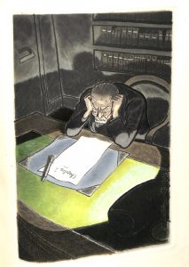 BRULLER (Jean). — Silences. Huit estampes dessinées, gravées, imprimées et coloriées à la main par Jean Bruller. — Paris, Aux nourritures terrestres, 1937. — In-folio, demi-maroquin noir avec coins, couverture illustrée (Reliure moderne).