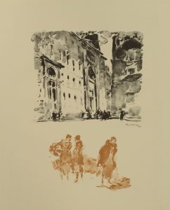 Un des 10 exemplaires de tête sur japon à la forme, contenant sous chemise d'éditeur une suite des lithographies sur japon avec remarques à la sanguine signées, une suite sur chine en sépia ainsi que des épreuves d'états et d'essais.