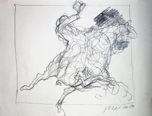 Exemplaire enrichi d'un dessin original à la mine de plomb signé (23 x 24,5 cm), d'une suite sur papier ancien bleuté justifiée et signée, d'un menu et de divers documents et lettres.