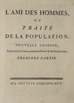 MIRABEAU (Victor Riqueti Marquis de) — L'Ami des Hommes, ou Traité de la Population. — S.l., 1758-1760. — 6 parties en 3 vol. in-4 , veau marbré, dos à nerfs ornés.