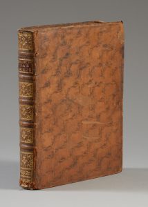 Reliure de l'époque, coiffes arrachées, avec manque en pied au dos, éraflures sur les plats. Bon exemplaire dans l'ensemble.