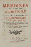 ASTRUC (Jean) — Mémoires pour servir à l'Histoire de la Faculté de Médecine de Montpellier. Paris, Cavelier, 1767. — 1 vol. in-4 , basane fauve marbrée, dos à nerfs orné de fleurons dorés, pièce de titre en maroquin rouge, tranches rouges.