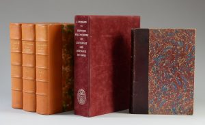 avec coins, dos à nerfs avec titre doré, tranches jaspées.