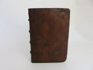 dos et coins refaits à neuf ; les parties anciennes sont les plaques de cuir estampées à froid. Une garde changée. Collationné et incomplet des feuillets a1 et a2 qui sont le titre et le privilège. Commence au feuillet a3 « index » 7 ff. n.c-322 pp. 1 f.b.- titre-137 pp.-3 pp. errata n.c. Petite mouillure dans la marge intérieure des derniers feuillets. Bon exemplaire complet des deux parties, contient 20 bois gravés par partie, soit 40 bois ; certains sont répétés. Rare édition originale de texte écrit par un juriste de Carcassonne, né en 1495 mort en 1582.