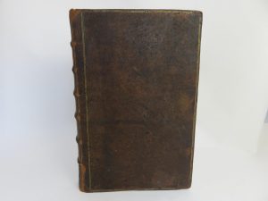 plein veau, double filet doré sur les plats en encadrement, dos à nerfs ornés de fleurons dorés, pièce de titre en basane marron. Reliure restaurée, dos entièrement remonté sur une basane marron clair. Les manques de cuir en coins ont été comblés. Reliure solide. Collationné et complet ; quelques notes anciennes à l’encre, en marge ou dans le texte pour parfois compléter la généalogie. Nombreuses erreurs de pagination. Frontispice-6 ff.nc. dont titre- 502pp.-132 pp. -6 ff.nc. Bel ouvrage peu courant avec de jolis blasons gravés dans le texte.