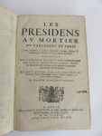 Blanchard François Les présidens au mortier du parlement de Paris, leurs emplois, charges, qualitez, armes, blasons & généalogies depuis l’an 1331 jusques à présent. A Paris, chez Besongne, 1647. 1 volume in-folio, reliure d’époque en...