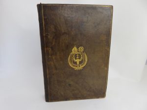 d’époque aux armes en plein veau, double filet doré sur les plats, dos lisse avec double filet doré en encadrement, titre doré. Reliure restaurée ; les mors ont été doublés, les manques de cuir en coins et en pied ont été comblés. Exemplaire aux armes de Pierre de Cornulier, évêques de Tréguier en 1617 puis de Rennes en 1619, mort en 1639. Ouvrage collationné et complet 1 fb.-titre 11 ff.nc.- 927 pp. Intérieur propre, de très rares feuillets roussis.