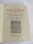 La Roche Flavin (Bernard de) Treze livres des parlemens de France. Esquels est amplement traicte de leur origine et institutions, et des présidens, conseillers, gens du Roy…A Bourdeaus, par Simon Millanges, 1617. 1 volume in-folio, reliure...