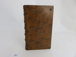 à nerfs orné, pièce de titre basane marron, tranches rouges. Bon exemplaire, quelques petites épidermures, et défauts d’usage. Le premier feuillet blanc se détache. Collationné et complet : 2 jolies planches dépliantes et 1 tableau agrémente cet ouvrage.