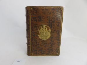 marron, date dorée, toutes tranches dorées. Exemplaire aux armes de la ville de Paris. Intérieur correct ; premier feuillet blanc froissé.