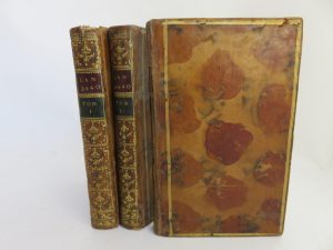 dorés, pièce de titre en maroquin rouge, verte pour la tomaison, tranches marbrées. Ensemble assez propre avec un défaut en coiffe au tome 1 et en pied au tome 3. Une petite mouillure marginale dans le troisième volume. Série complète, trois frontispices. Ouvrage important mêlant fiction et critique politique du XVIIIème.