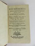 Pauw (Corneille de) Recherches philosophiques sur les américains, ou mémoires intéressants pour servir à l’histoire de l’espèce humaine. Avec une dissertation sur l’Amérique & les Américains. A Berlin, sans éditeur, 1770. 3 volumes...