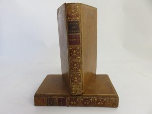 clair, triple filet doré sur les plats, dos lisses ornés de fleurons dorés, pièce de titre en maroquin vert, rouge pour la tomaison. Dos insolé et cuir sec, mors faible et en partie recollé. Papier légèrement jauni de façon uniforme. Collationné et complet, 2 frontispices, 2 planches simples, 9 planches dépliantes dont 3 cartes. Récit de voyage intéressant, « aucun voyageur, avant l’auteur, n’avait visité le Cachemire » Brunet I p.802.