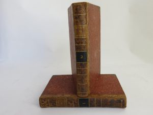 demi-basane marron à coins, dos lisses avec filets dorés, pièce de titre basane marron, noire pour la tomaison. Défaut en coiffe au tome 2, cuir un peu sec et frotté le long des mors. Collationné et complet. 12 planches dont le frontispice. Intérieur correct. Première édition au format in-8° de ce célèbre voyage sortie la même année en édition originale au format in-4°.