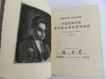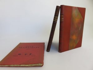 poétique » illustré d’un portrait par Man Ray, second volume dans une reliure identique mais plus sombre de Marcel Arland « terres étrangères » avec un portrait par Gallanis. Exemplaires numérotés, couvertures conservées, pas de rousseur. Le dernier est broché. Texte de Géo Charles avec un portrait par Foujita. Couverture empoussiérée, rousseurs.