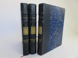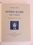 Hugo Victor - Timar Notre-Dame de Paris. A Paris, à l’emblème du secrétaire, 1942. 3 volumes in-4°, reliure éditeur en demi-basane bleu foncée, dos à nerfs avec auteur et titre dorés, fer doré au centre du dos représentant la cathédrale....