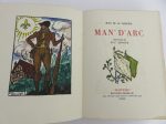 La Varende (Jean de) - Arnoux Guy Man’ d’Arc. A Paris, aux éditions Rombaldi, 1944. 1 volume broché petit in-4°, couverture rempliée et illustrée. Exemplaire n° 199 sur vélin pur fil, belles illustrations couleur de Guy Arnoux réalisées...