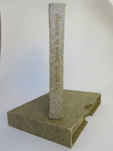 Lalau Maurice Les quinze joyes de mariage. Paris, Jules Meynial libraire, 1928. 1 volume in-4° en feuilles sous couverture rempliée, chemise et étui de l’éditeur. Quelques défauts à l’étui et la chemise, rousseurs éparses. Rare tirage...
