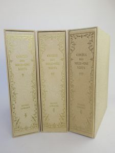 Lemarié Henri Les contes des mille et une nuits. Les Heures Claires, à Paris, 1955. 3 volumes in-4° en feuilles, couvertures rempliées, chemises et étuis de l’éditeur. Bel exemplaire illustré en couleurs par Henri Lemarié. Ouvrage tiré à...