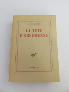 Malraux André La tête d’Obsidienne. Paris, Gallimard, 11 février 1964. 1 volume in-8° broché, couverture à rabats. Ouvrage consacré à l’œuvre de Pablo Picasso ; un cahier de reproduction de photo en noir et blanc in-fine. Edition...