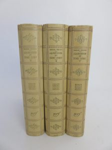 Proust Marcel - Van Dongen Kees A la recherche du temps perdu. Paris, chez Gallimard, 1947. 3 volumes in-4° en cartonnage de l’éditeur, décor géométrique sur les plats. Cartonnage empoussiéré, série complète, sans étui et sans rhodoïd....