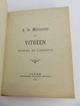 Anonyme A la Mémoire du Vitréen, membre de l’institut. Vitré, imprimerie Edouard Lécuyer, 1903. Petite plaquette in-16, reliée en vélin rigide avec titre imprimé en noir sur le premier plat. Ex-libris de Mauriti Le Dault. 10 ff. n.c. à la...