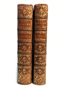 BATTEUX (Charles). — Les Quatre Poëtiques d’Aristote, d’Horace, de Vida, de Despréaux […]. — A Paris, Chez Saillant & Nyon - Desaint, 1771. — 2 volumes in-8°, veau, triple filet doré encadrant les plats, fleuron aux angles, dos à...