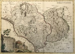 [GRAVURE] — Carte gravée et rehaussée représentant le « Patrimonio di Pietro e Sabina » — Italie, XVIIIe siècle. — 31 x 41 cm.