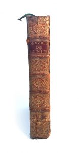 RÉGNIER (Mathurin). — Les Satyres et autres œuvres [...] avec remarques. — A Londres, Chez Lyon & Woodman, 1729. — In-4°, veau blond, filet doré encadrant les plats, dos à nerfs orné (reliure de l’époque).