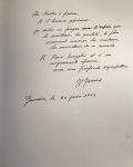 JORNOD Jean-Pierre — Art = +. Ed. Christian Pirot Paris 1986. — E.O. — L’un des 90 ex. sur Arches, celui-ci n°11, signé par l’auteur et l’éditeur. — Très bel envoi de Journod à René Huyghe daté de juin 1986. — Reliure...