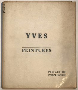 La date, un nom de lieu et des dimensions, typographiés, tentent de faire passer celles-ci pour des reproductions de tableaux peints à Nice, Paris, Londres, Tokyo ou Madrid. Ainsi, en 1954, « Yves » serait déjà un peintre assez connu pour qu’un ouvrage lui soit consacré.