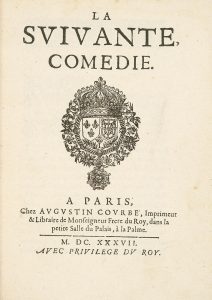 CORNEILLE 1606 - 1661 — LA SUIVANTE, comédie. — Paris, Augustin Courbé, 1637. — In-4, maroquin rouge, janséniste, dentelle intérieure, tranches dorées sur marbrure (Chambolle-Duru).