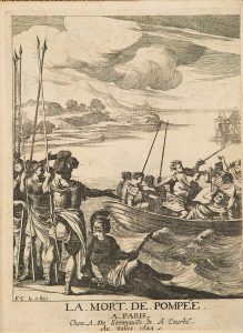LA MORT DE POMPÉE. — Tragédie. — Paris, Antoine de Sommaville & Augustin Courbé, 1644. — In-4, maroquin rouge, janséniste, dentelle intérieure, tranches dorées (Belz-Niédrée).