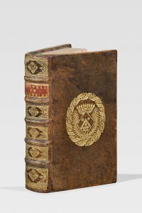 RECUEIL DE 7 TRAGÉDIES DONT 3 DE CORNEILLE, en un volume in-12, veau granité, armoiries dorées au centre, dos orné, pièce de titre rouge, tranches mouchetées de rouge (Reliure de l’époque).