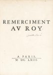─ REMERCIMENT AU ROY. Paris, s.n., 1663. PIÈCE RARISSIME DONT ON NE CONNAÎT QUE 2 AUTRES EXEMPLAIRES (voir n°126). Signature Corneille Laisné sur le titre.