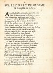 ─ SUR LE DÉPART DE MADAME LA MARQUISE DE B.A.T. S.l.n.d. [Paris, avant 1660]. 4 pages. SEUL EXEMPLAIRE CONNU, semble-t-il, de ce superbe poème écrit pour l’actrice Mademoiselle Duparc. Picot, n°147, indique : Suivant Granet, ces vers parurent d’abord en feuilles veloutées in-4, mais sans date. Nous n’avons pas retrouvé cette édition que d’autres auront peut-être la chance de rencontrer. Signature Corneille Laisné inscrite à la plume à la fin du poème.