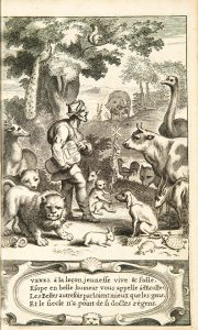 Remarquable illustration, comprenant un frontispice gravé sur cuivre, une vignette en tête de la Vie d’Ésope et 155 jolies vignettes en taille-douce disposées dans le texte à mi-page.
